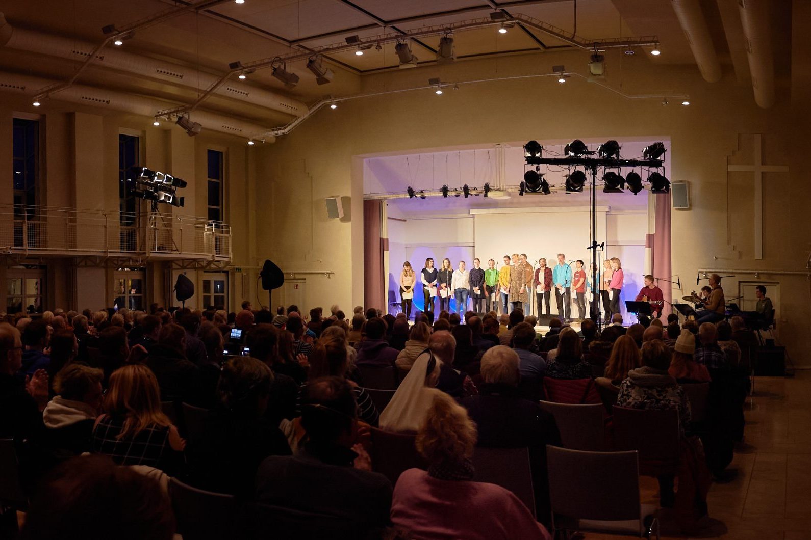 Es ging in Liedern, Filmsequenzen und Wortbeiträgen darum, was Menschen motiviert und die Kraft gibt, auch angesichts von Widerständen mutig nach der Wahrheit zu fragen, aufzustehen und gegen den Strom zu schwimmen.